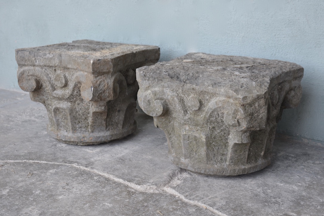 Pair of 18th c. Chapiteaux in Belgian Blue Stone from a property in Ghent, Belgium