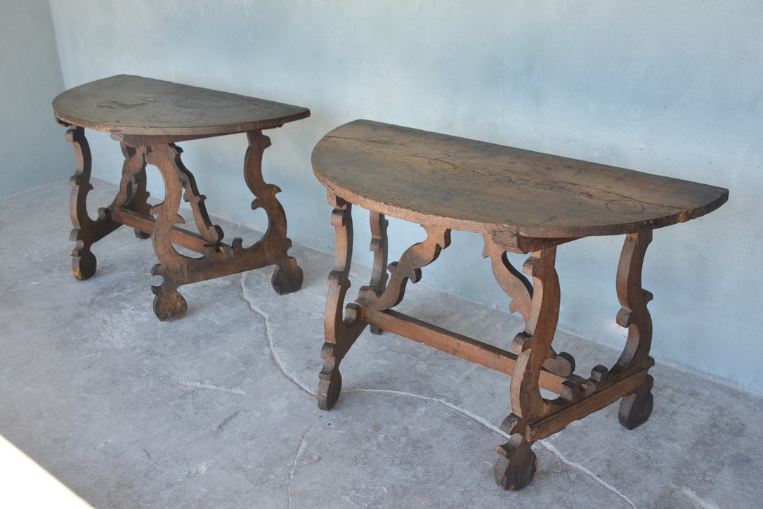 Pair of 18th c. Italian Demi Lune Console Tables