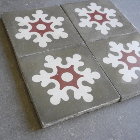 Gray and White Colored Cement Tile Reclaimed from France with Snowflakes.