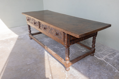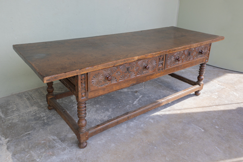 Close (cat. 1) Architectural Elements Doors Mantels Shutters Sinks Gates Bathtubs Columns Surrounds Iron Work (cat. 2) Flooring Colored Cement Glazed Tiles Marble Specialty Tiles Stone Stone Tile Terracotta Wood Tiles (cat. 3) Garden Coping Furniture Basins Decor Fountains Planters Troughs Urns & Vessels Wells Surrounds Pedestals (cat. 4) Building Materials Cobblestone Bricks Roof Tiles Wallstone Ceilings & Beams Steps (cat. 5) Furnishings Furniture Garden Art Accessories Mirrors Misc Elements (cat. 6) Lighting Lanterns Decorative Sconces Continue browsing Make an inquiry Clear all Products Gallery About Contact My inquiry (0) Continue browsing Make an inquiry Clear all (0) Products (cat. 1) Architectural Elements Doors Mantels Shutters Sinks Gates Bathtubs Columns Surrounds Iron Work (cat. 2) Flooring Colored Cement Glazed Tiles Marble Specialty Tiles Stone Stone Tile Terracotta Wood Tiles (cat. 3) Garden Coping Furniture Basins Decor Fountains Planters Troughs Urns & Vessels Wells Surrounds Pedestals (cat. 4) Building Materials Cobblestone Bricks Roof Tiles Wallstone Ceilings & Beams Steps (cat. 5) Furnishings Furniture Garden Art Accessories Mirrors Misc Elements (cat. 6) Lighting Lanterns Decorative Sconces Gallery About Contact FAQ Terms & Conditions Privacy Policy Furnishings Reclaimed Furniture 17th C. Walnut Table Collection Reclaimed Subcategory Furniture Overall size Width ± 93.25 inches Depth ± 33.25 inches Length ± 31 inches 17th C. Walnut Table You may also like Late 17th c Spanish Table` Newly Quarried | Belgian Blue Stone Table French Walnut Wall Console