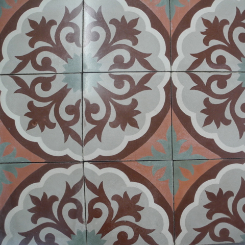 Teal, Red and Gray Cement Tile