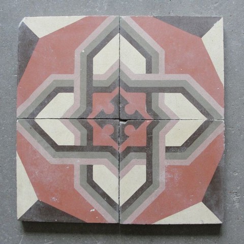 Intricate Antique Star and Cross Pattern Colored Cement Tile